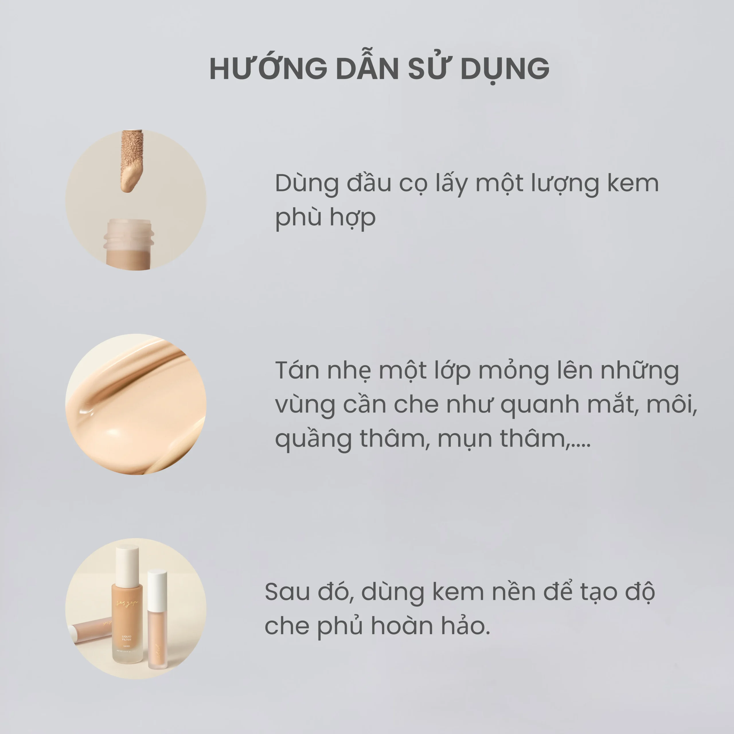 – Kết hợp với kem nền Gesgep Liquid Filter