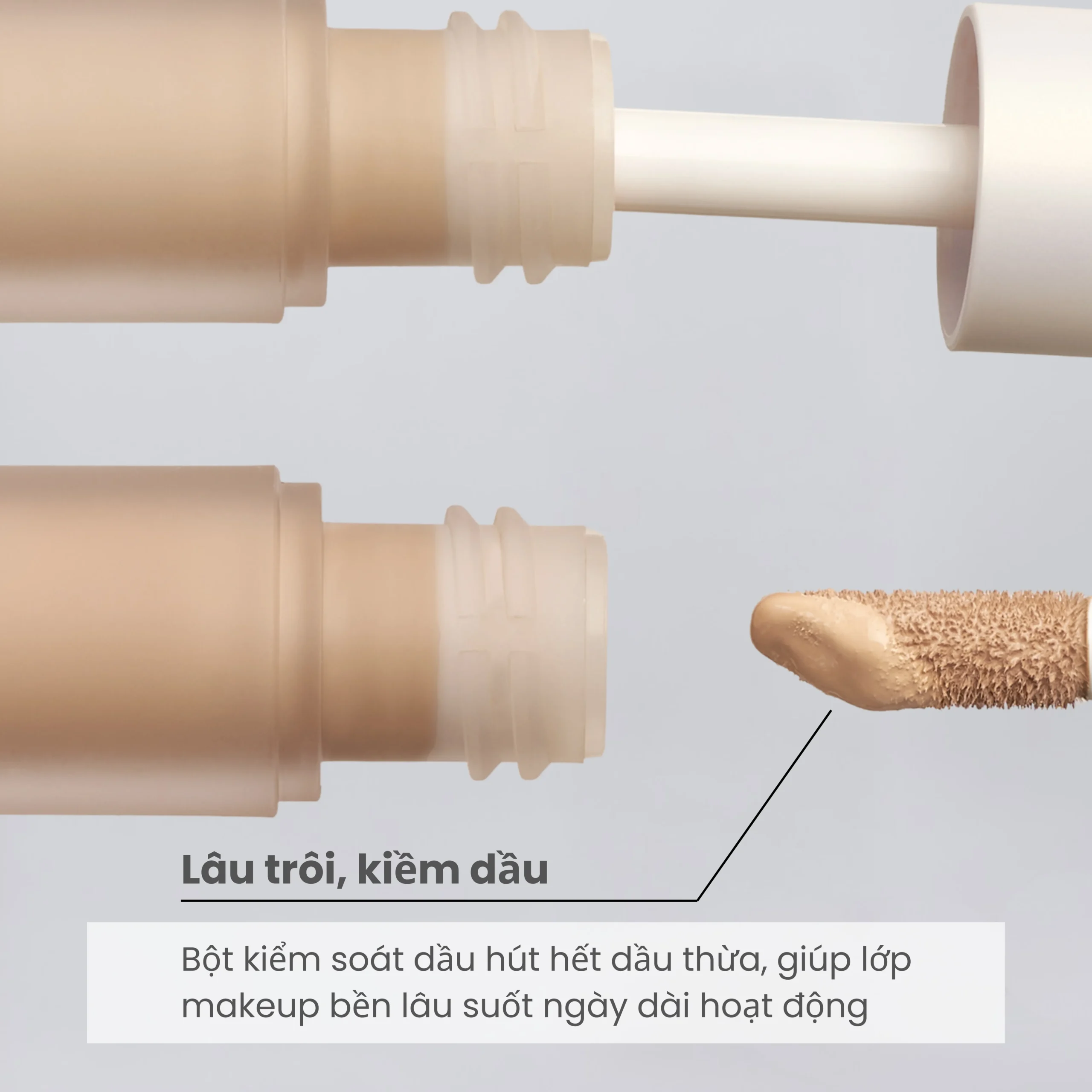 – Kiềm dầu, lâu trôi với bột kiểm soát dầu hút hết dầu thừa và tăng độ bền cho lớp trang điểm.